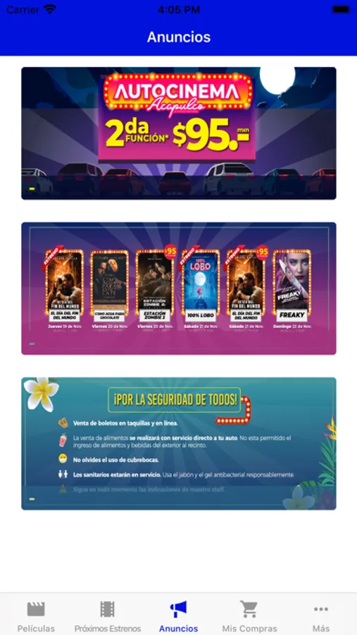 Desde nuestra Aplicación podrás tener acceso a toda la información de las películas, estrenos horarios y novedades del complejo. Además podrás acceder a la compra de entradas.