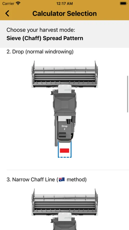 - Smart Drop function available, to remotely release the drop pan with your smartphone from the carrier and test your grain loss.