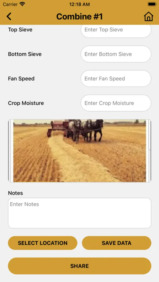- Share your results and preferred combine setting with your team and friends over text, email or social media.