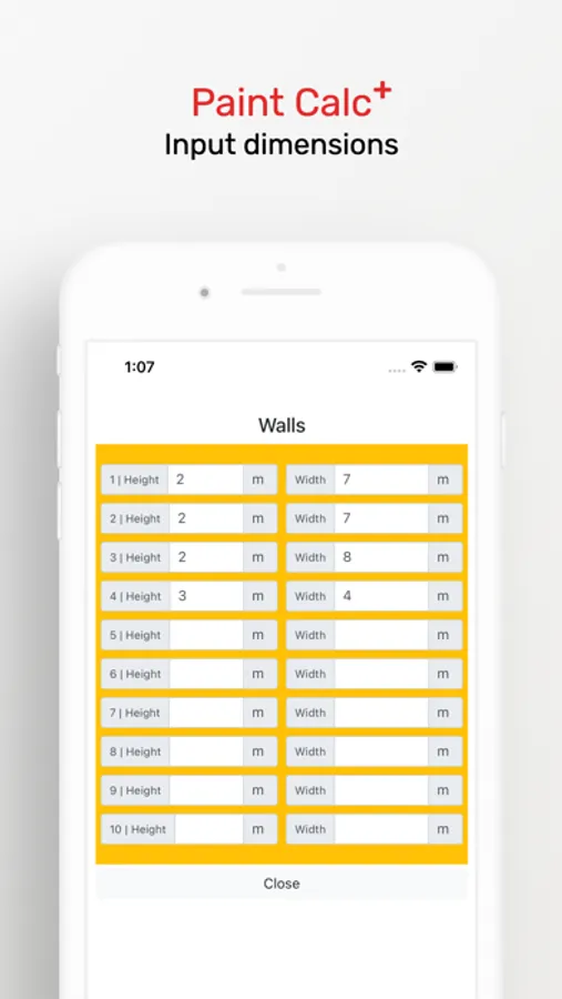 2 - Input the the wall measurements.