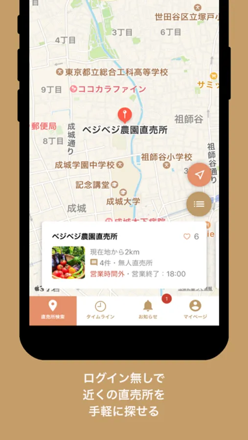 ・消費者の方は、スマホのGPS機能を使って現在地から近い全国の直売所を調べ探索できます。