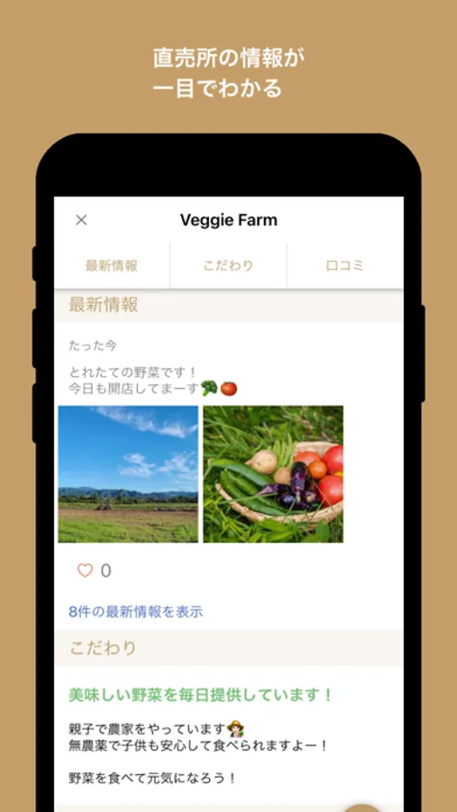 直売所に特化したSNS(直売での日常、地産地消飲食店、野菜、肉、魚、直売で仕入れたレシピなど直売ソーシャルネットワークです)#ハッシュタグをつけての投稿を是非、ご活用下さい。