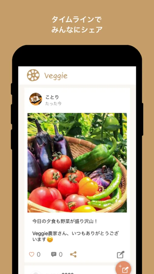 ◆タイムラインから野菜チップで応援とレベルアップ!