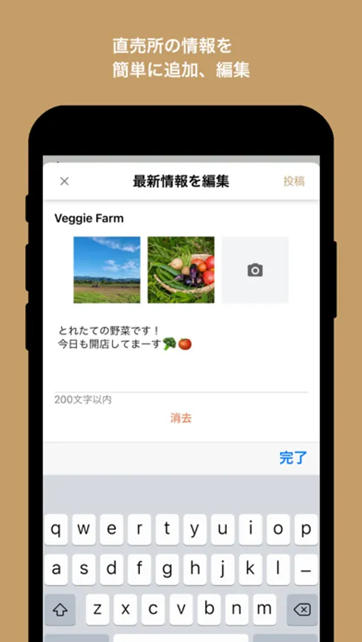 ・生産者の方は、スマホ1つで直売所の情報を登録、編集ができます。