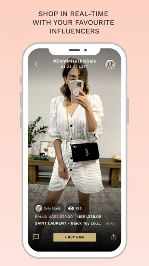 • Influencers live shop exclusive sales and stream their favorite fashion finds of the day. Simply swipe through to discover!