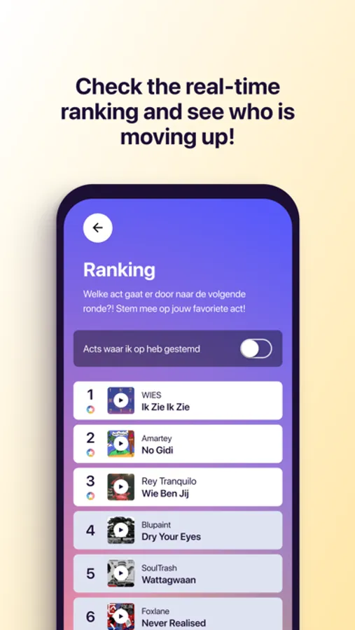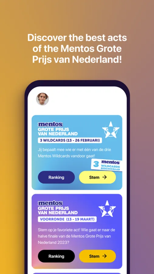 This year we work with the Grote Prijs van Nederland to facilitate their entire selection- and voting process. This allows every act to receive real-time feedback and insights into their participation. Everyone has finished uploading their video auditions for The Mentos Grote Prijs van Nederland. For the first time fans are given real influence instead of the traditional jury system. At each stage of the competition it's possible to vote using this Sounders App. This is how you will decide who makes it to the next round.