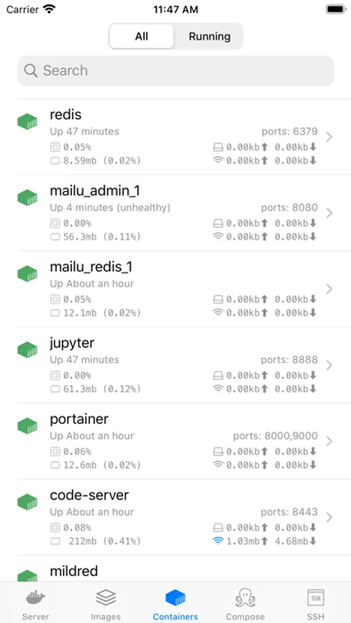 - Statistics and Charts for containers