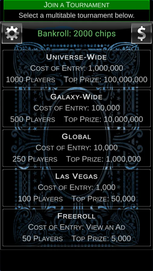 * Adjustable Blind Times - adjust the speed of the tournament with 5, 10 and 15 minute blinds