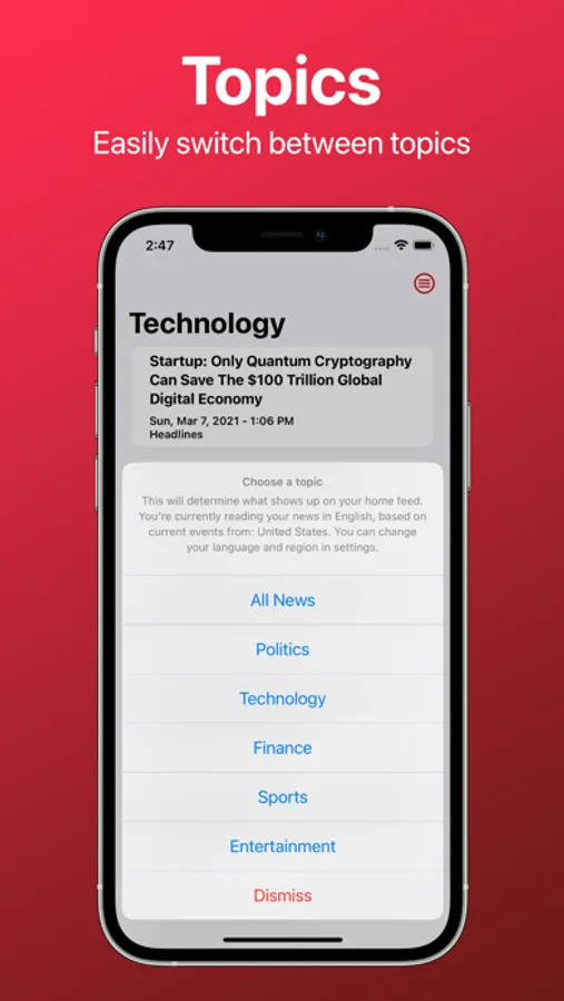 The app itself has a lot of distinct features, such as being able to choose the topic you want to view on your home feed. If you only want to view technology without the politics, you can. Only interested in sports? There's an option for that too. Ruby has options for what you can view on your primary feed.