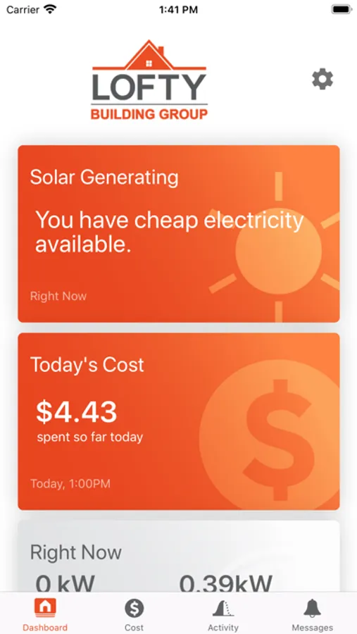 Download the Lofty Energy app to see your household’s energy usage (and costs!) in real-time on your tablet or smartphone.