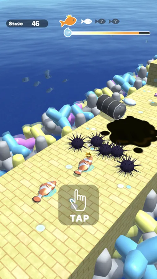 ・Hold a screen longer and release, fish are jumping higher.