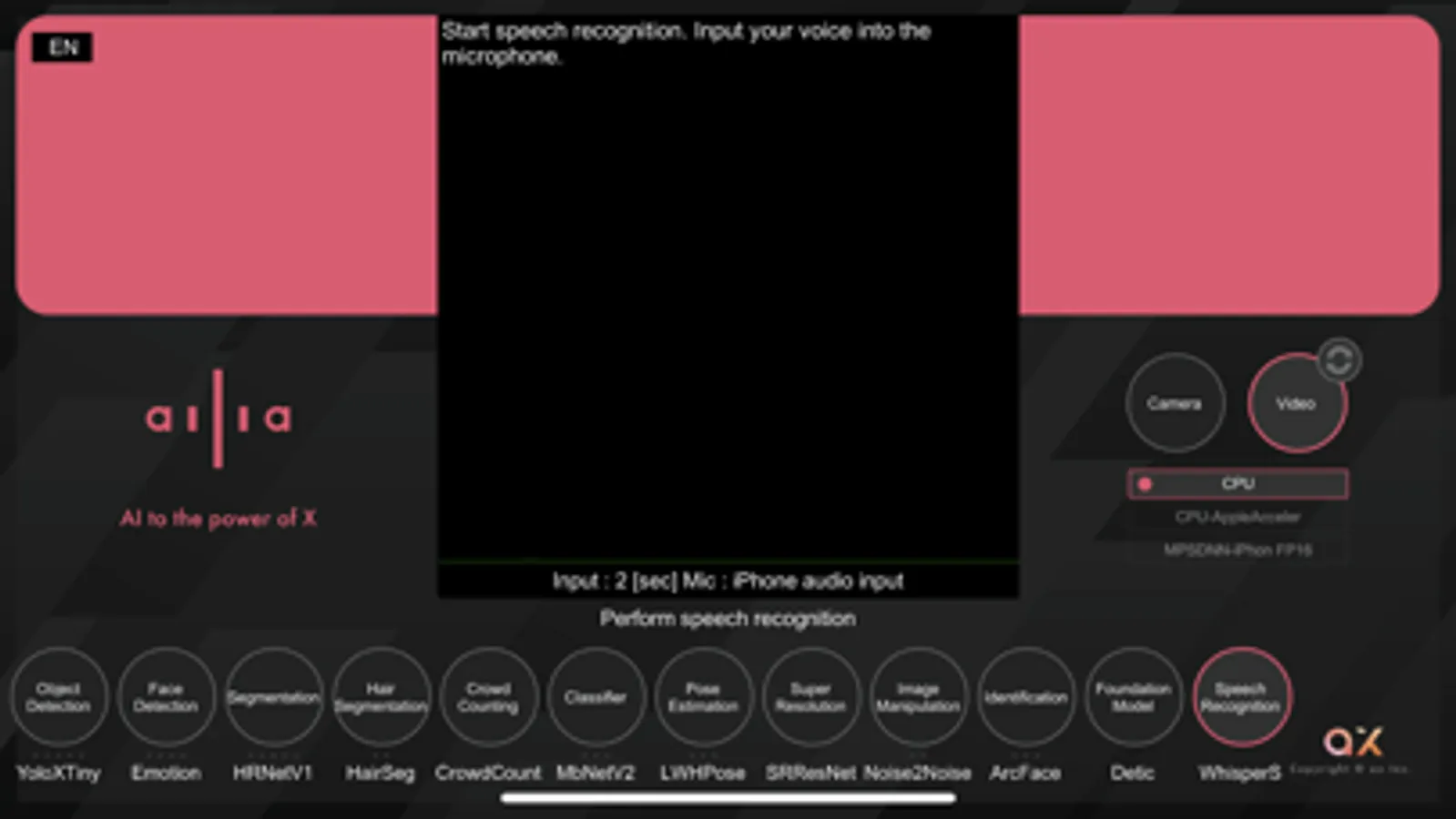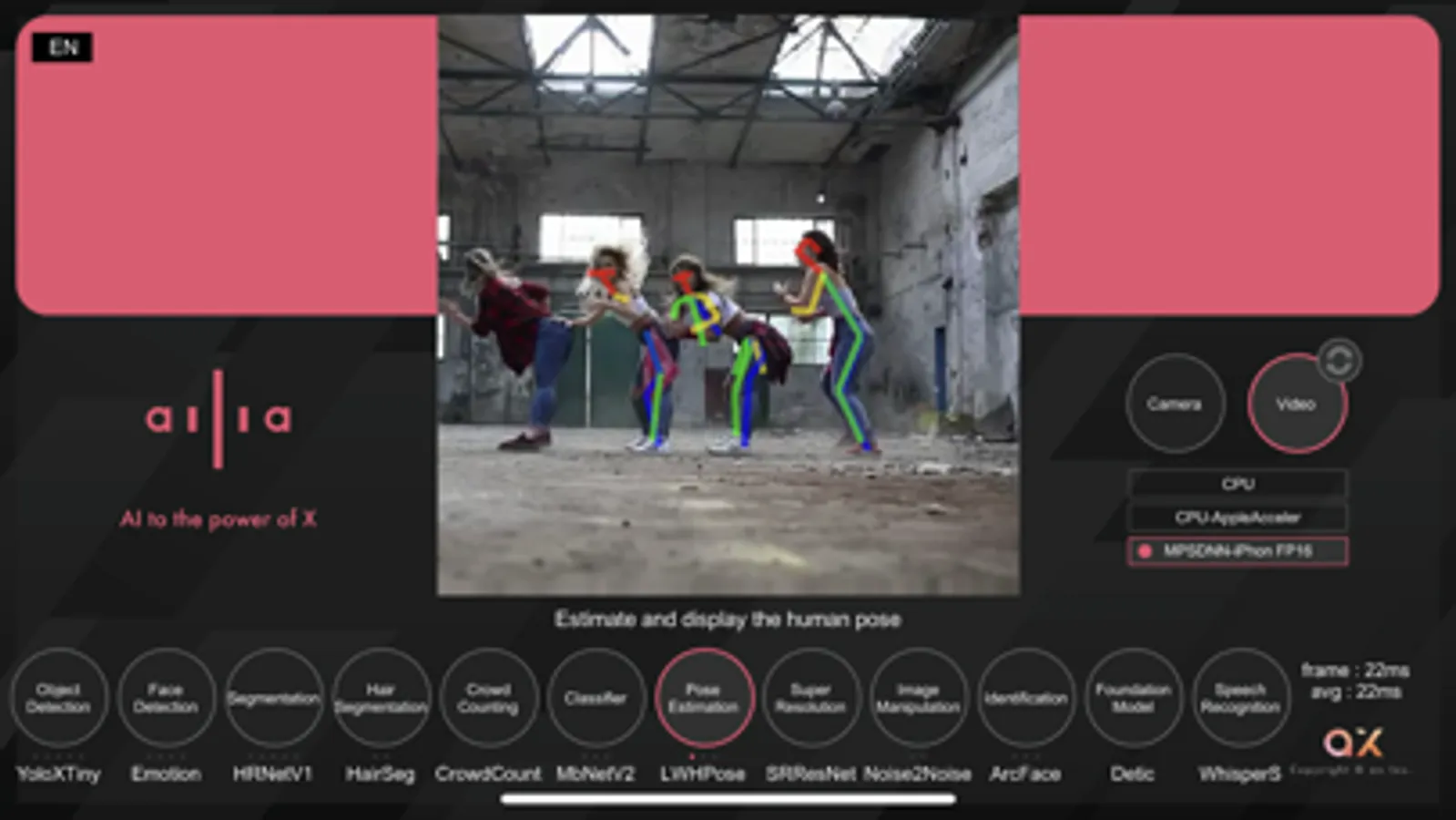 ailia AI showcase features examples of deep learning models running on your device. ailia AI showcase is using the ailia SDK. ailia SDK realizes the high-speed inference that makes the best use of the CPU and GPU.