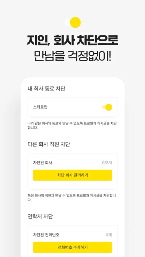 차단한 회사에 다니는 모든 회원들에게 내가 노출되지 않아요.