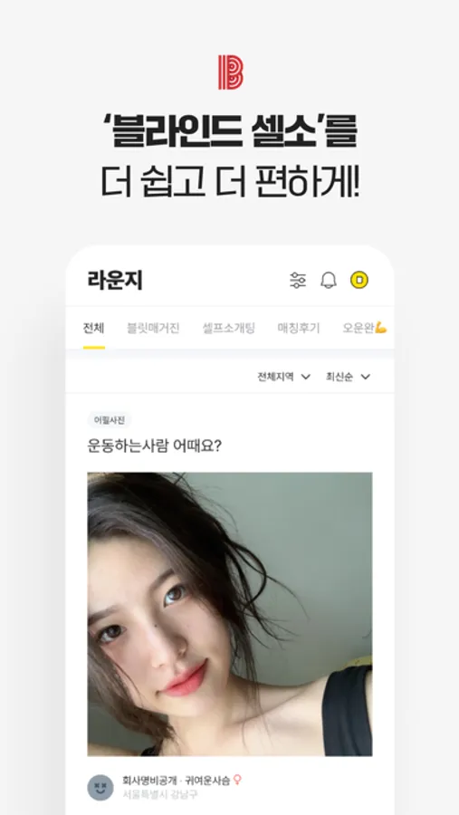 블릿 라운지에서 셀프 소개팅, 미팅 글을 올려보세요!