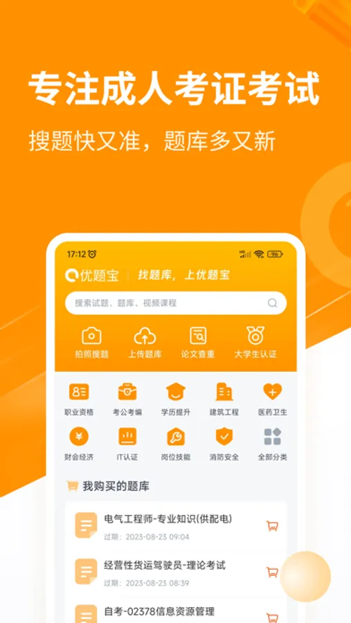 一款专注成人考试考证搜题刷题的神器,大学生认证免费搜题,免费练题库。