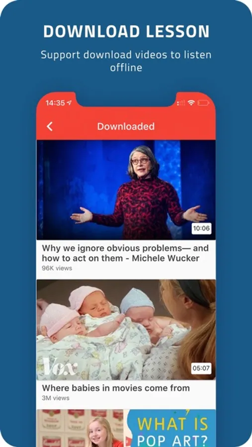 This app is designed to bring you the best ways to immediately improve your English skills. You can read, listen to amazing videos with your mobile devices. Even if you are already good at English, you can also watch videos to get more sharing-knowledge from experts all over the world as well as update the latest news.