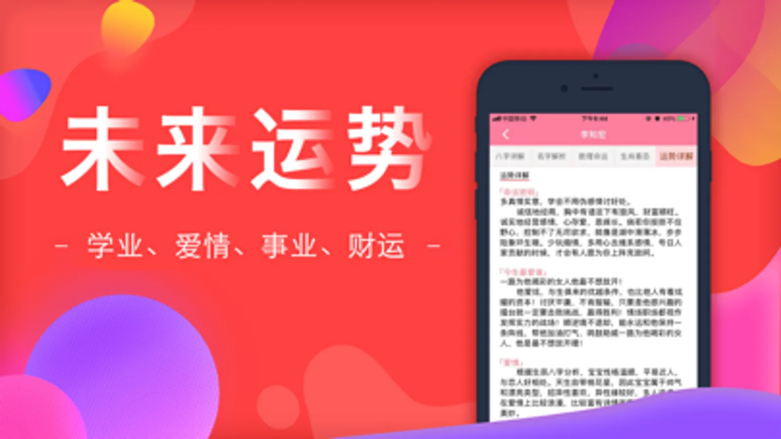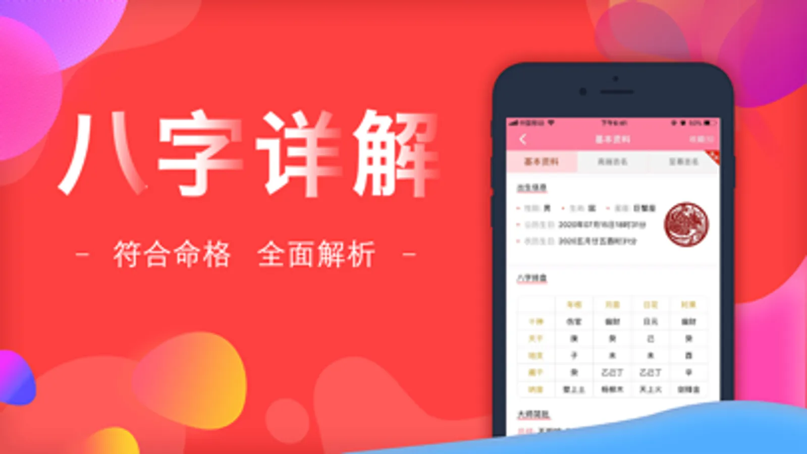 2、详解八字排盘、三才五格、生肖喜忌、汉字释义,五行喜用、旺运方案等综合分析评测,全方位解读名字的意义。
