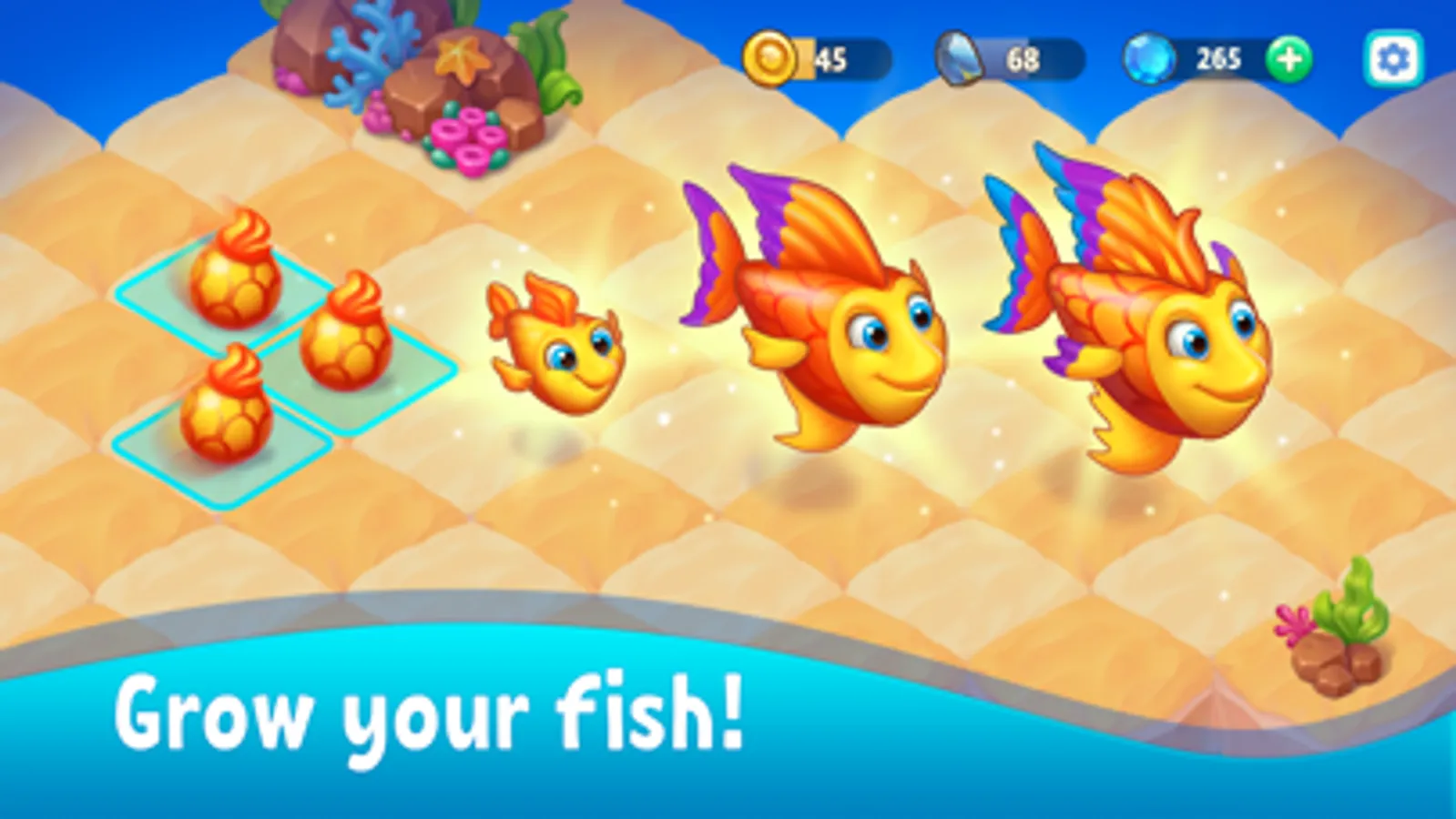 The fish kingdom was famous for its beauty and rare sea magic until all these were taken away by evil octopus villains. Little fish need your help... Heal the sea bottom and restore the fish kingdom! Collect unique fish species you’ve never seen before. Remove the curse and build your own undersea world!