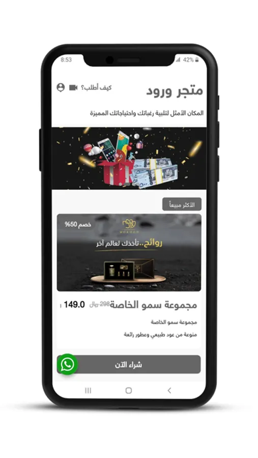 تطبيق متخصص في بيع مُنتجات العطور داخل المملكة العربية السعودية لمختلف المدن، باستخدام طرق دفع مختلفة (التحويل البنكي، والدفع عند الاستلام)، بحيث يتابع الطلب مندوب متخصص مع المُستخدم حتى توصيل الطلب لعنوانه بحرفية عالية واتقان