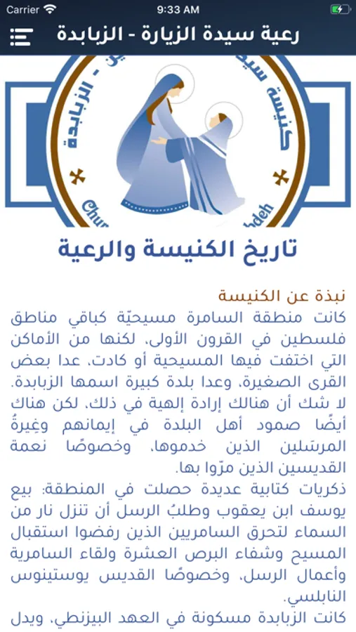 هذا التطبيق تابع لكنيسة سيدة الزيارة للاتين في الزبابدة . تجدون به كل ما تحتاجونه من معلومات حول الرعية والمواعيد المهمة والأخبار. وهدفه كي يكون حلقة وصل بين الكنيسة والمؤمنين . فتكونوا على تواصل دائم معنا وسهولة التواصل معنا. لتقصير المسافات بين الكنيسة وأبنائها.
