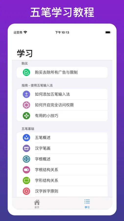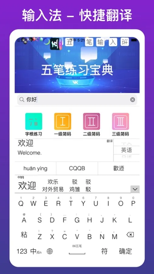 五笔输入法最轻松自在的五笔学习、练习、打字输入法APP!