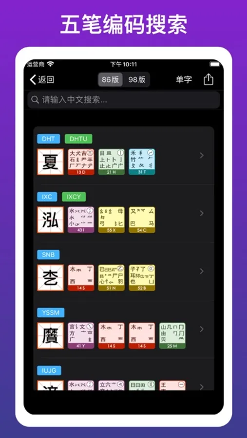 每种练习方式都附带详细的五笔拆解图文步骤,让你练习五笔,学习五笔打字更快、更轻松自在,短时间让你真正学会五笔打字。