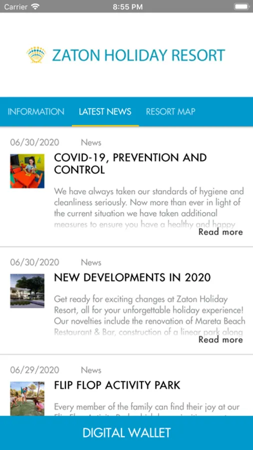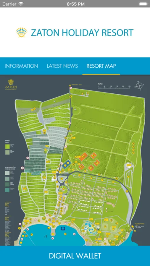 The app also includes a resort map with points of interest as well as various information relevant for your stay.