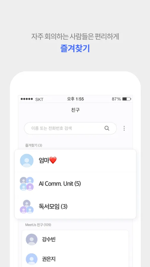 MeetUs 친구라면 바로 회의에 초대할 수 있어요.