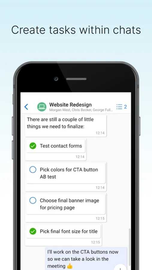 Finally - chat & tasks in one place. Forget switching between apps just to keep track of what’s going on.