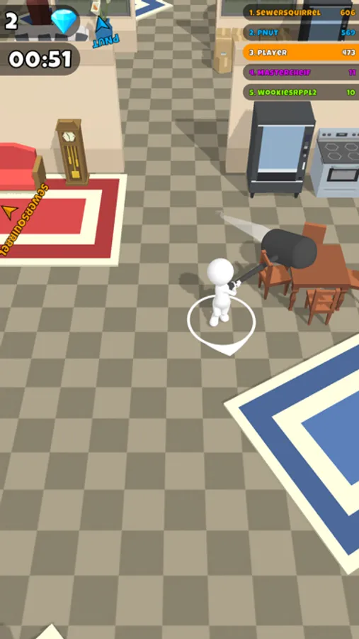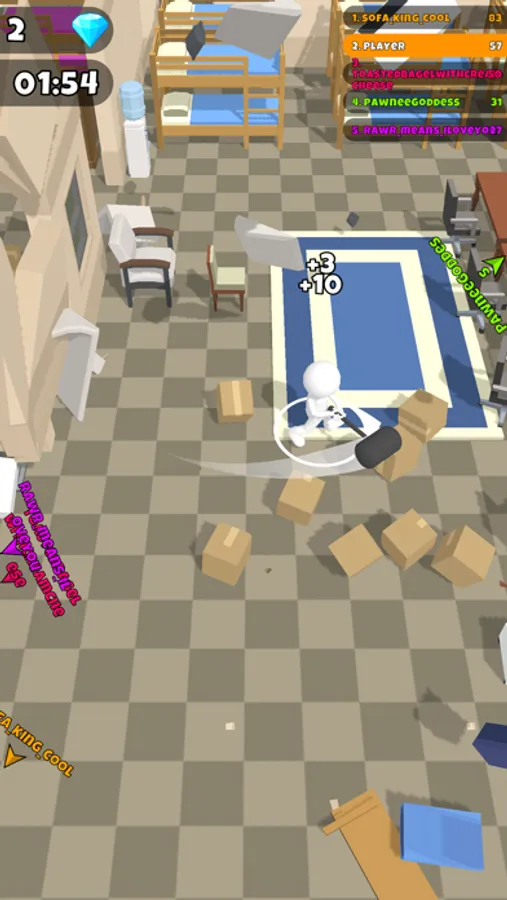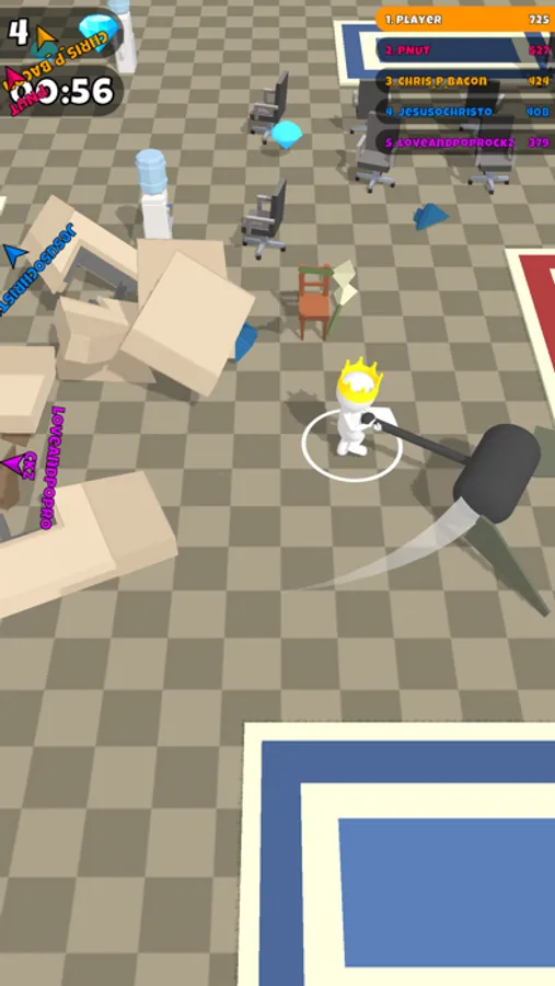 Start the game with your sledgehammer that grows as you tear down. Try to be the one by breaking your opponents tables or even walls.