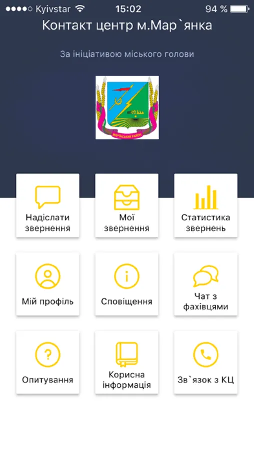 «Контакт-Центр м. Мар'янка» - це комплексна система управління зверненнями громадян, для зручності використання якої було розроблено цей мобільний додаток. За допомогою мобільного додатку можна: