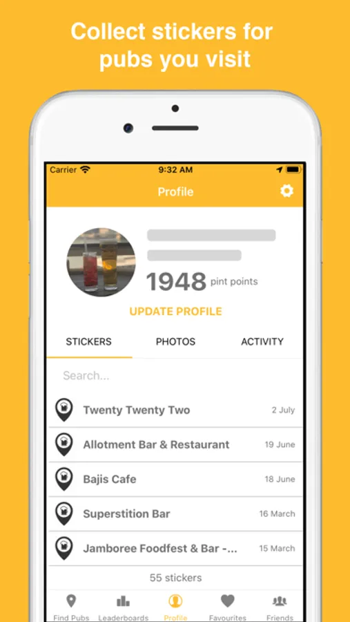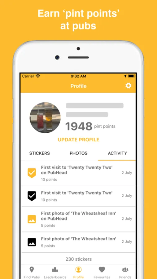 • Connect with friends to share pub stickers you've earned, discover new pubs together and compete for pint points!