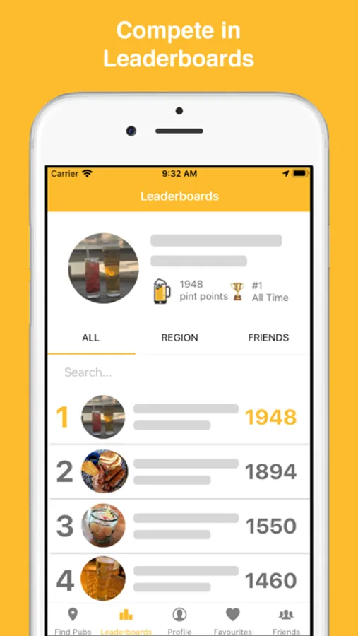 • Leaderboards allow you to compete with fellow PubHead’s in your local area, globally or even between your friend group!