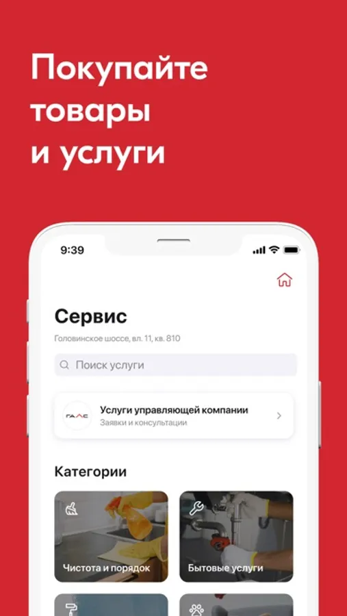 - Заказывать товары и услуги: воду, цветы, ремонт окон и др.