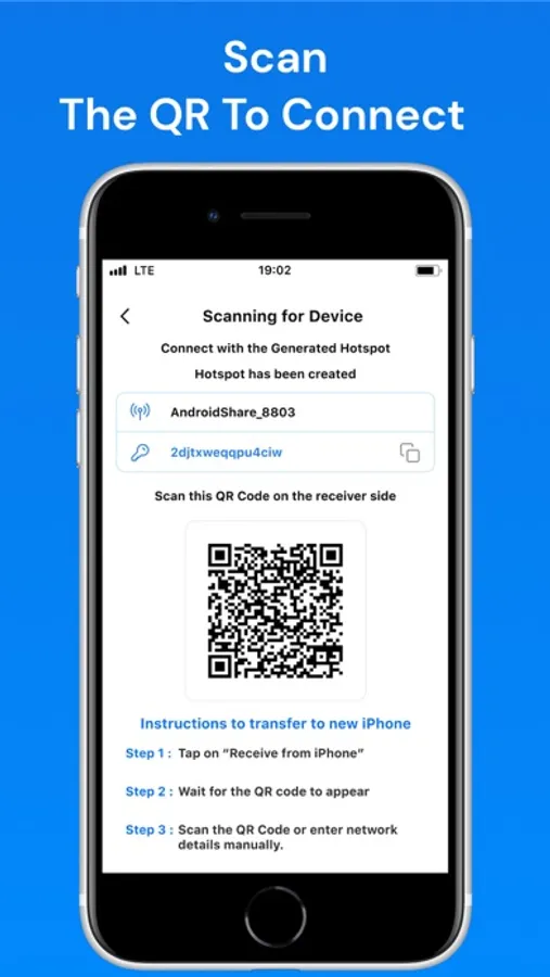 Swift and Secure Transfers: No cables, internet, or Bluetooth needed. Uses a personal hotspot.