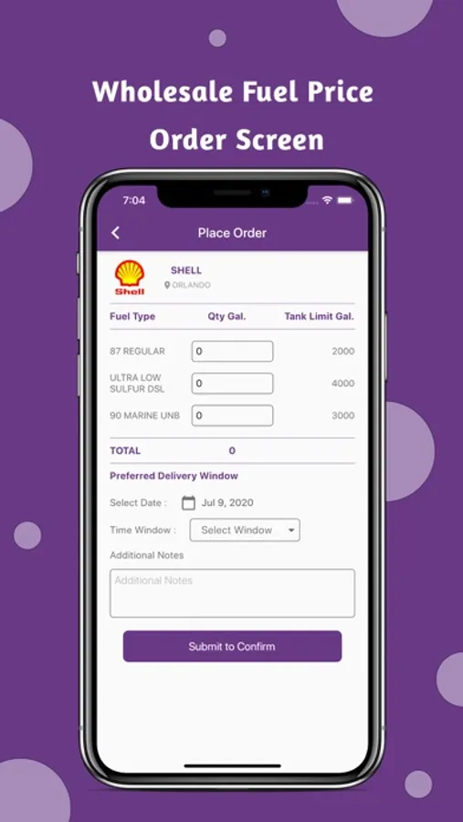 Mobile application for customers of fuel distributors to manage various aspects of the wholesale fuel supply process. Simplified rack-price updates, fuel order placement, fuel order tracking, order history, inventory management, and back-office process support.