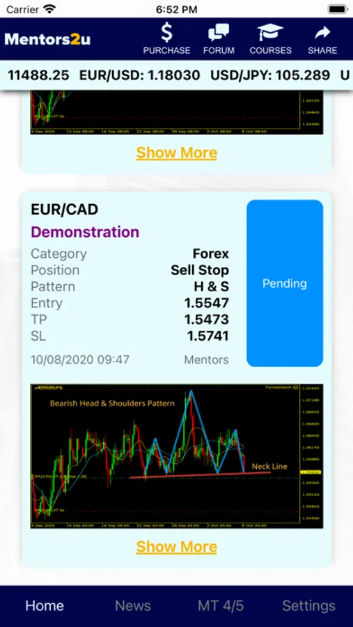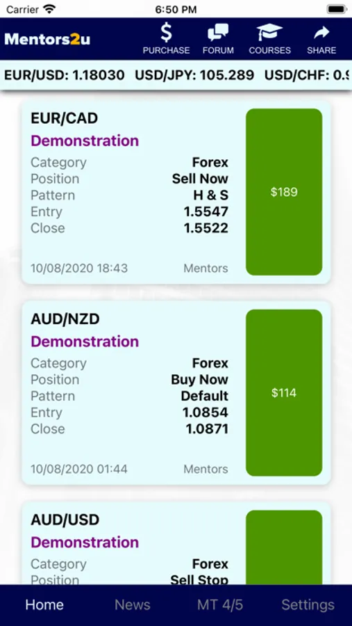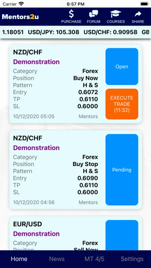 Mentors2U also enables you to learn and see the trading opportunities every day, and execute them directly and seamlessly onto your very own MT4/MT5 DEMO trading account with any broker.
