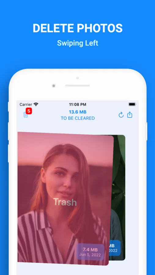 -- Swipe left and right to delete duplicate photos from your camera roll.