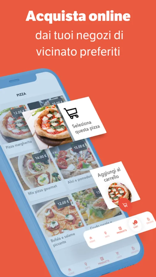 Attraverso l'App di Ordina in Cloud accedi al marketplace per ricercare gli esercizi commerciali o i ristoranti vicino a te ed effettuare acquisti, ordinazioni a domicilio o da asporto ovunque ti trovi: comodamente seduto sul divano di casa, in ufficio oppure al tavolo del locale.