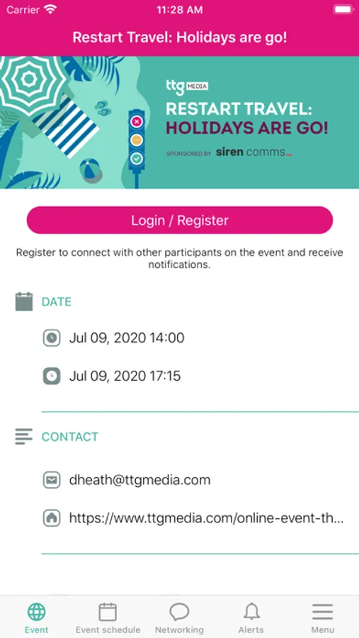 TTG Events is helps you attend and manage your agenda for all TTG Media-run events. TTG Media provides the latest travel industry news, features and events concerning travel agencies, tour operators, destinations, tourist boards, airlines, cruise lines, hotels, LGBT travel, law, regulation and technology companies aimed at UK and Ireland travel agents, tour operators and other travel industry professionals.