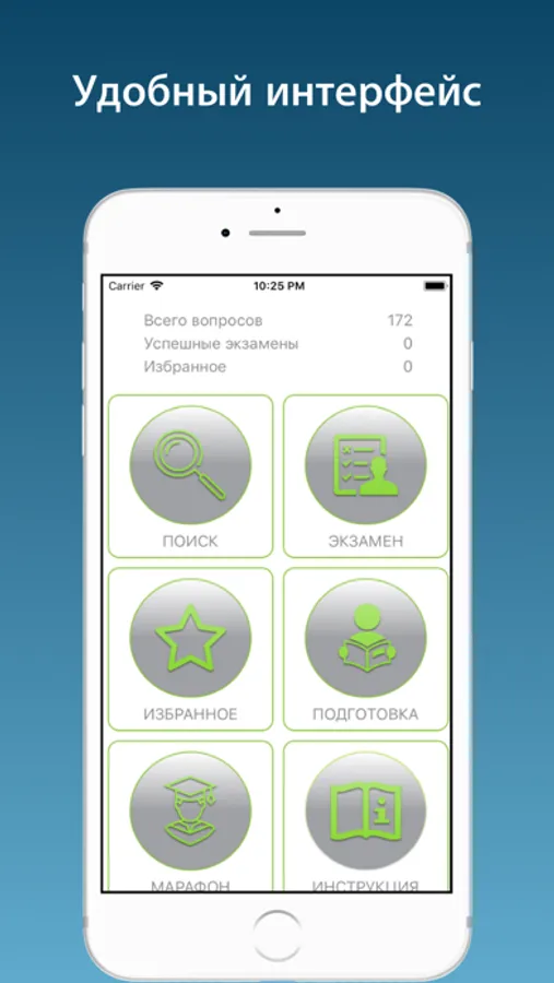 • Подготовка - Позволяет изучить вопросы в текстовом формате с отмеченными правильными ответами;