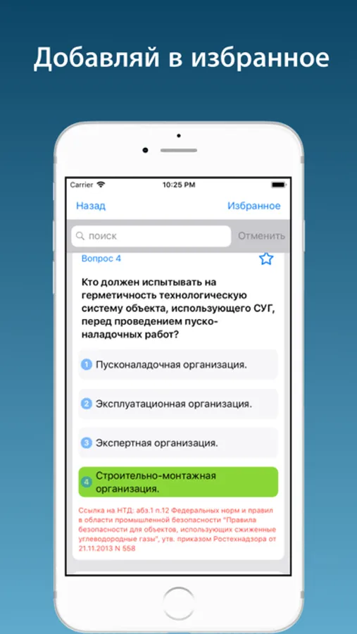 С помощью данного приложения вы сможете пройти качественное обучение и подготовку к аттестации по курсу: Б.7.2 (ПБ 213.10) Эксплуатация объектов, использующих сжиженные углеводородные газы.