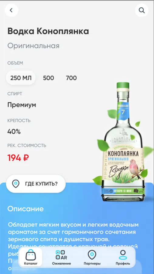 Птица Коноплянка – вымышленный персонаж, символ бренда «Коноплянка», который, тем не менее, стремится стать максимально реальным. Мы решили помочь ему в этом, создав это приложение, с помощью которого Коноплянка оживает и общается с вами прямо с этикетки приобретенного вами продукта.