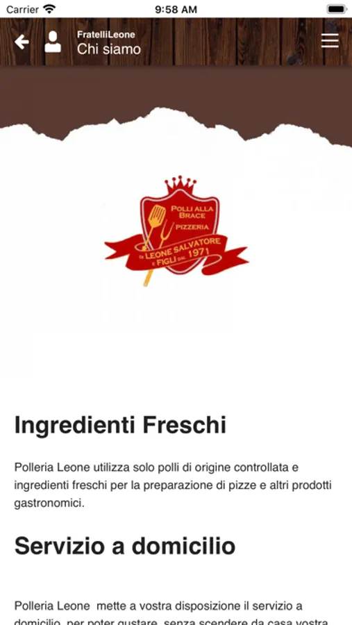 Polleria Leone utilizza solo polli di origine controllata e ingredienti freschi per la preparazione di pizze e altri prodotti gastronomici.