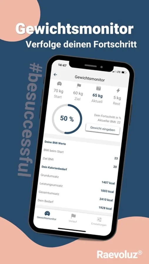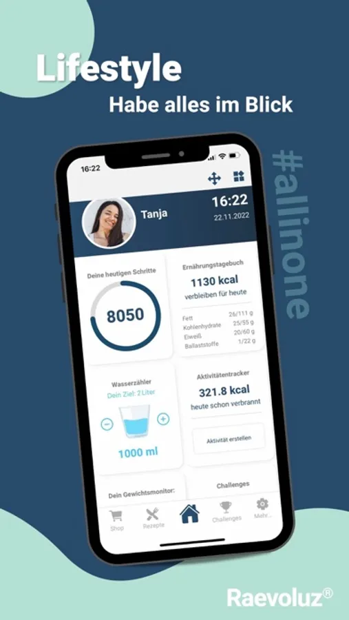 Mit Raevoluz® kannst du deine Ernährung, Aktivitäten und dein Körpergewicht ganz einfach und schnell kontrollieren & verbessern.