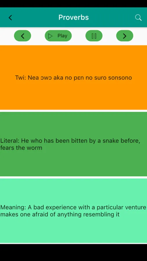 Proverbs is an integral part of the Ghanaian culture. Basically, one who is able to speak in proverbs and understand proverbs is generally thought of as having a mastery over the language. Listen to and learn how to say Twi proverbs and know their meanings using this app.