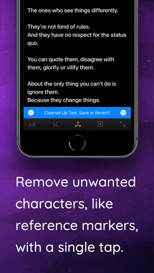 - Cleanup: Easily remove characters from pasted text that are unnecessary for reading, such as reference markers, verse numbers, and more.