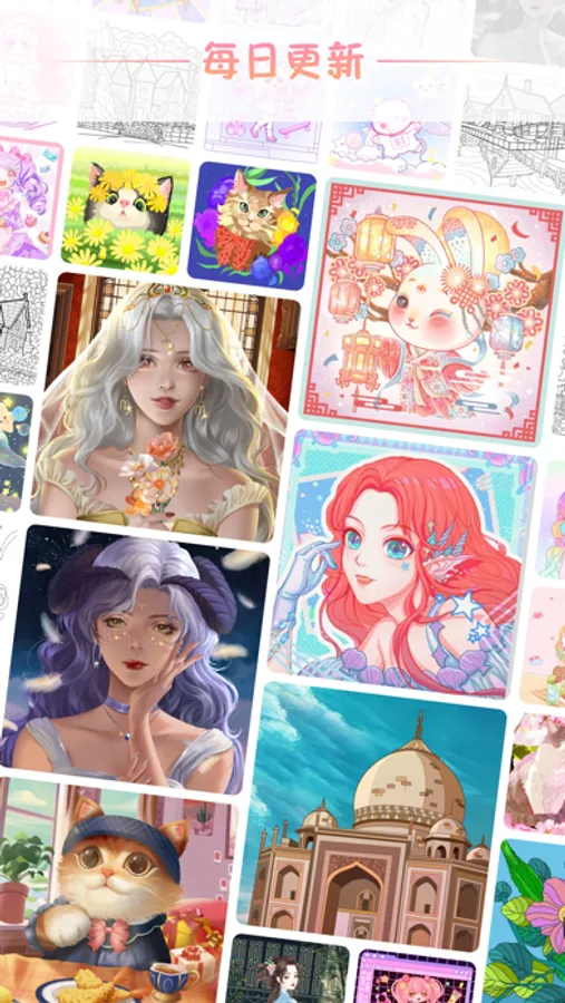 作为一款解压神器,花花填色是一款内容丰富、模板精美的治愈系数字填色绘本,我们有超多富有创意风格独特的精美图画,包括人物,古风,动物,花卉,艺术品,风景等多种题材。玩法简单容易上手,只需用手指点击图画中色号相对应的色块,轻轻一点即可填色,无需纸笔,随时随地享受数字涂色的乐趣,当你遇到困难时,更有贴心的填色提示工具,为你的涂色创作加油助力。
