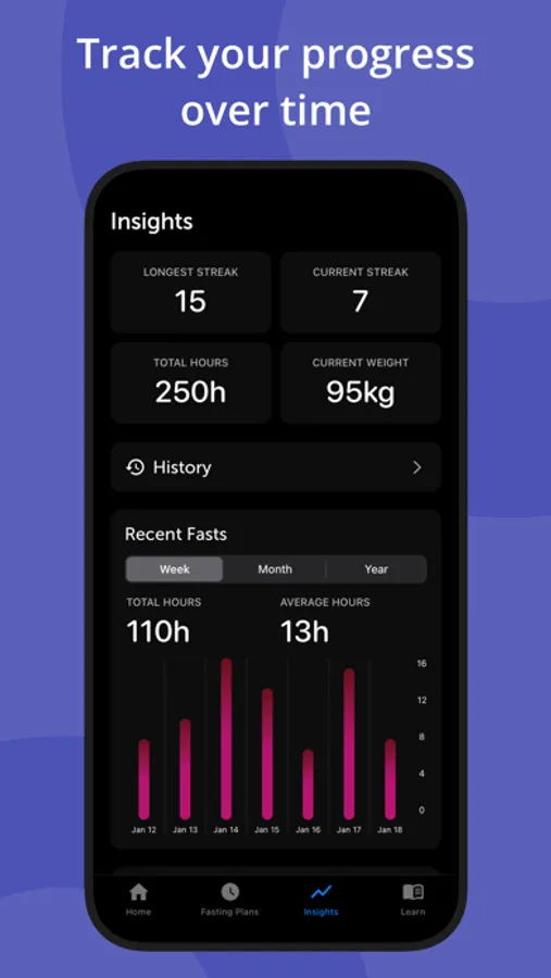 Fasta is a simple, beautiful, and customizable fasting tracker app. Its elegant interface makes it super easy to track your ongoing fasts and also see your progress over time.