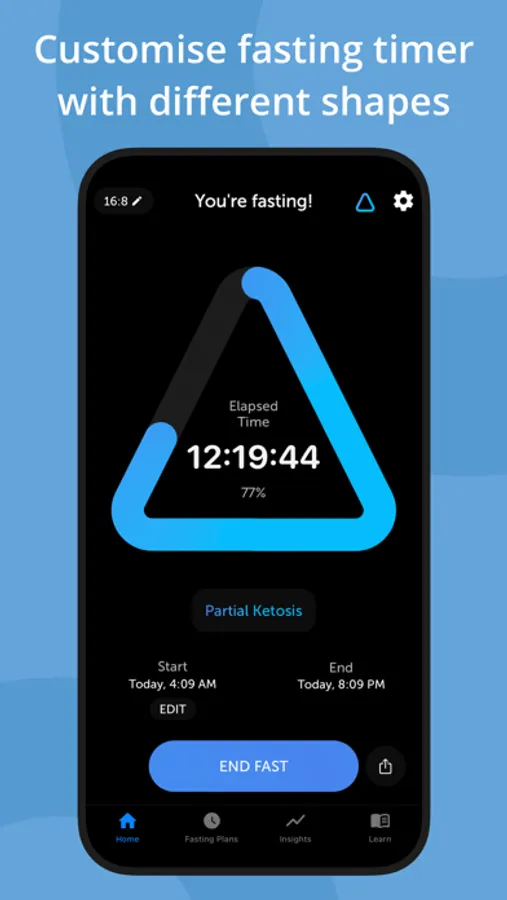• Customise fasting timer with 3 different shapes and 50+ beautiful color themes